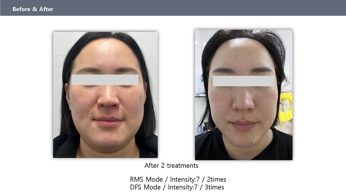 我們使用獲得韓國專利認證 (專利號 10-2024-0048418) 的 Rtherma 設備,確保安全與效果 。
